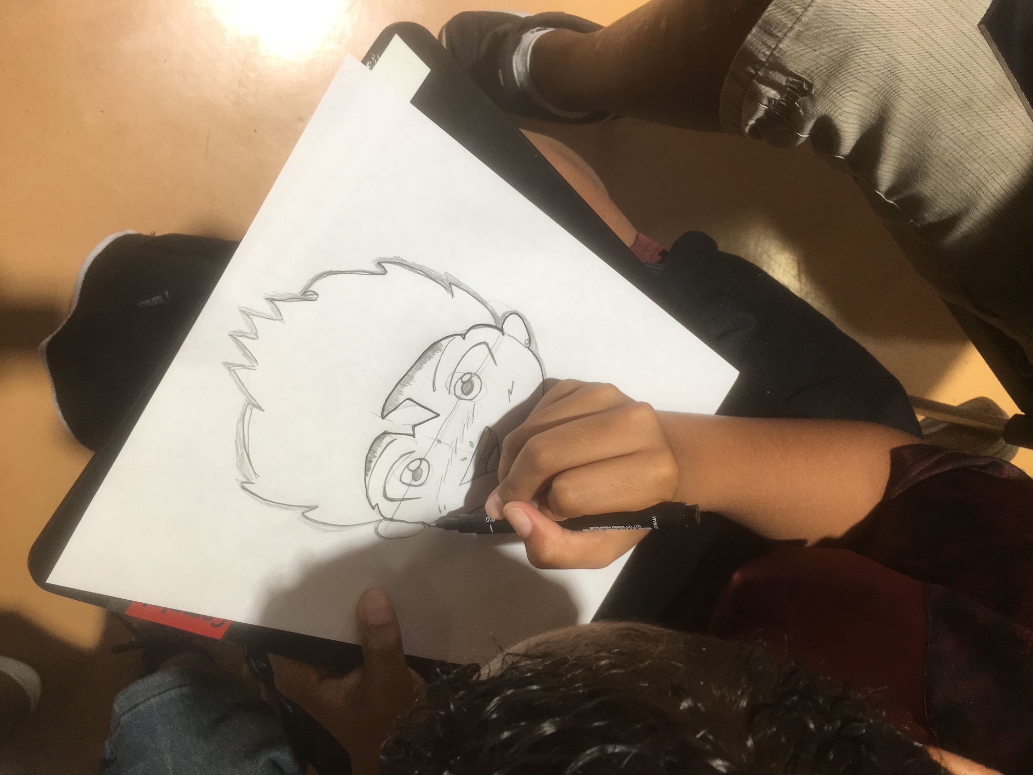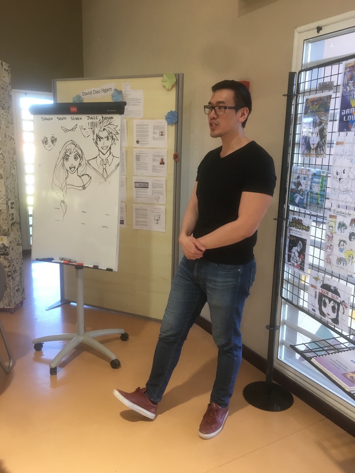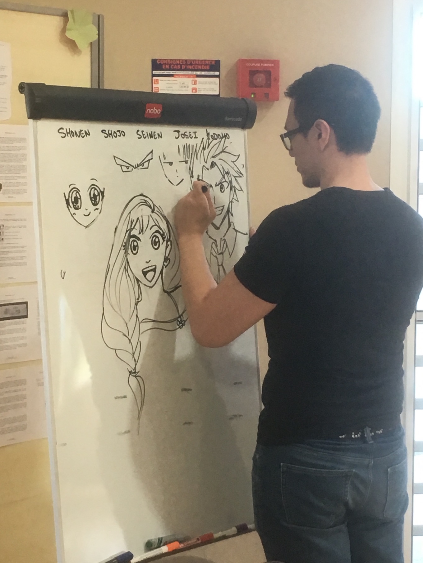 Un groupe d’élèves, accompagné de Madame DARMIZIN et de Madame DELORME, professeures respectivement d’arts plastiques et documentaliste, a rencontré Mister Mango, Mangaka en visite en Nouvelle-Calédonie.